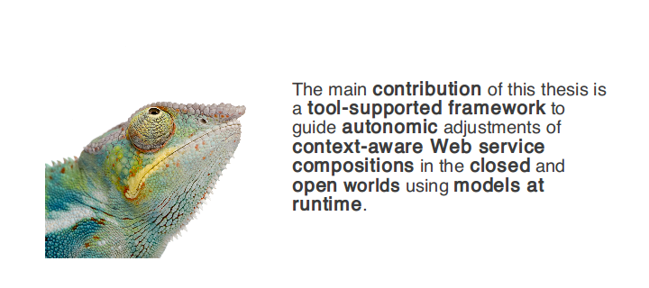The goal of this thesis is to provide a tool-supported framework to guide autonomic adjustments of context-aware service compositions using models at runtime. This framework spans over design time and runtime to face arising known and unknown context events (i.e., foreseen and unforeseen at design time) in the closed and open worlds, respectively.
